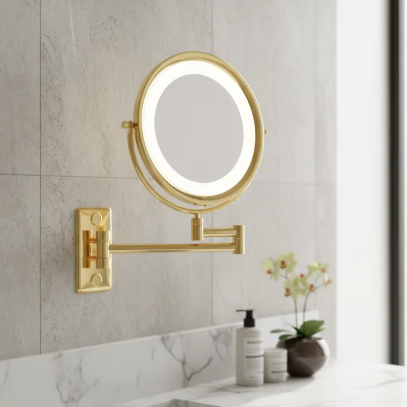 A moldura em metal confere um toque clássico e sofisticado, enquanto a luz com temperatura branca quente/fria permite ajustar a iluminação conforme a necessidade. Com uma única fonte de luz, você terá a clareza necessária para realçar sua beleza em qualquer momento do dia.