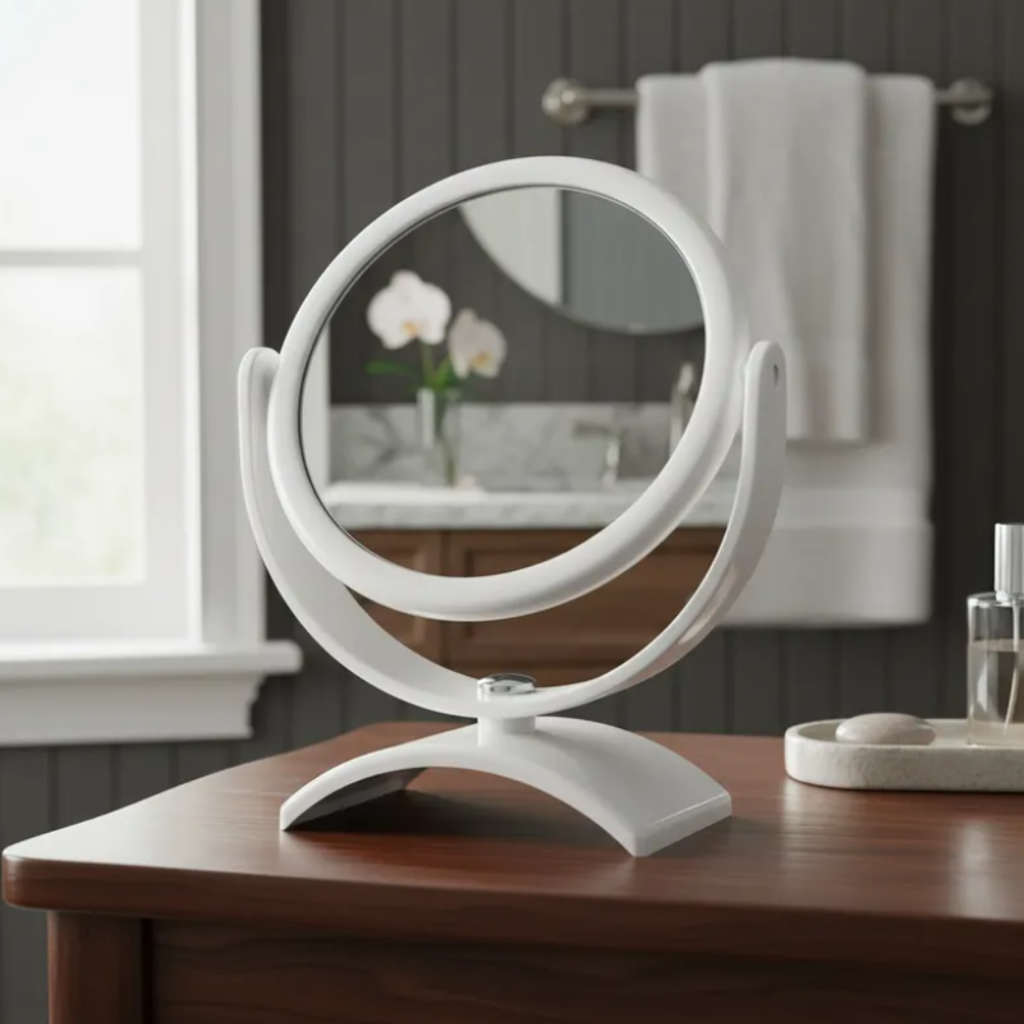 O Espelho Miroir Gardie 5x Aumento é a escolha perfeita para quem busca precisão e praticidade na hora da maquiagem e cuidados pessoais. Com um diâmetro de 14,5 cm e altura de 19 cm, este espelho redondo é ideal para uso em banheiros, penteadeiras e quartos, proporcionando uma visão clara e ampliada.